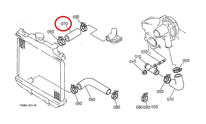 MANGUITO SUPERIOR DE AGUA KUBOTA. ORIGINAL. K1758072930